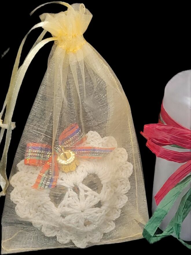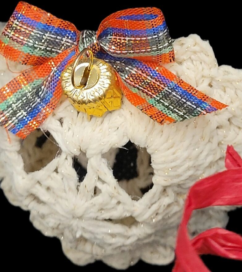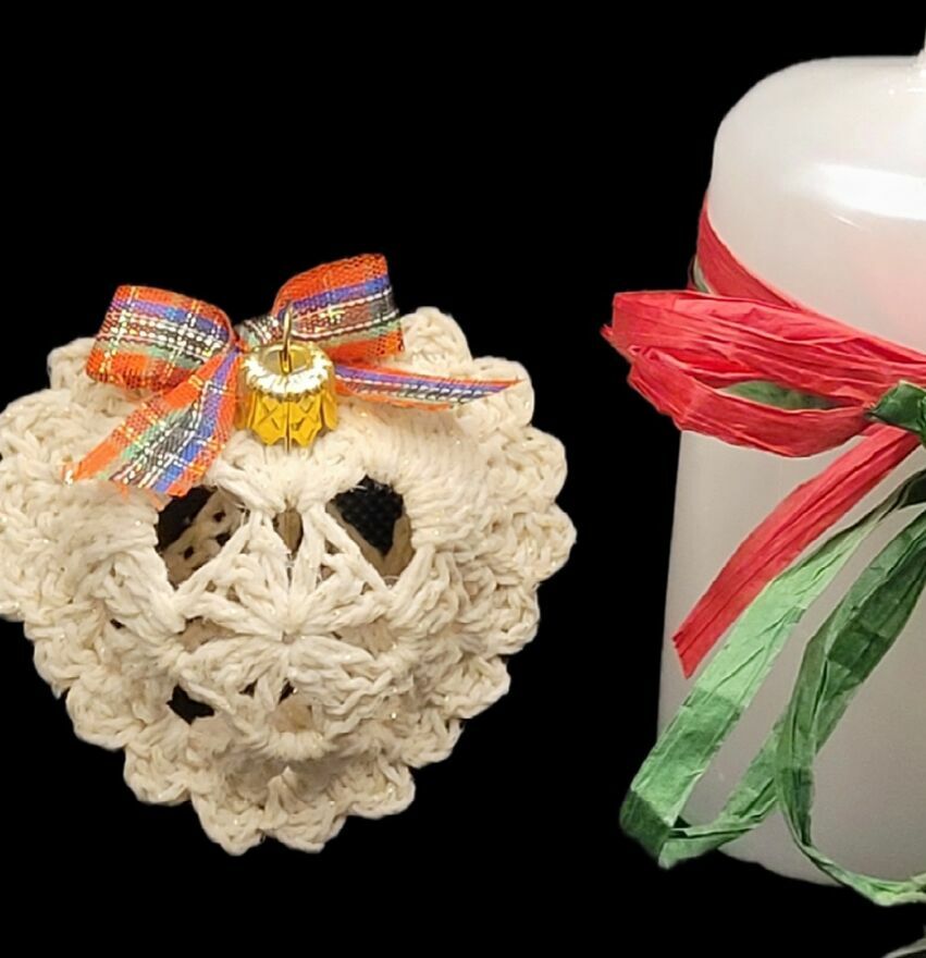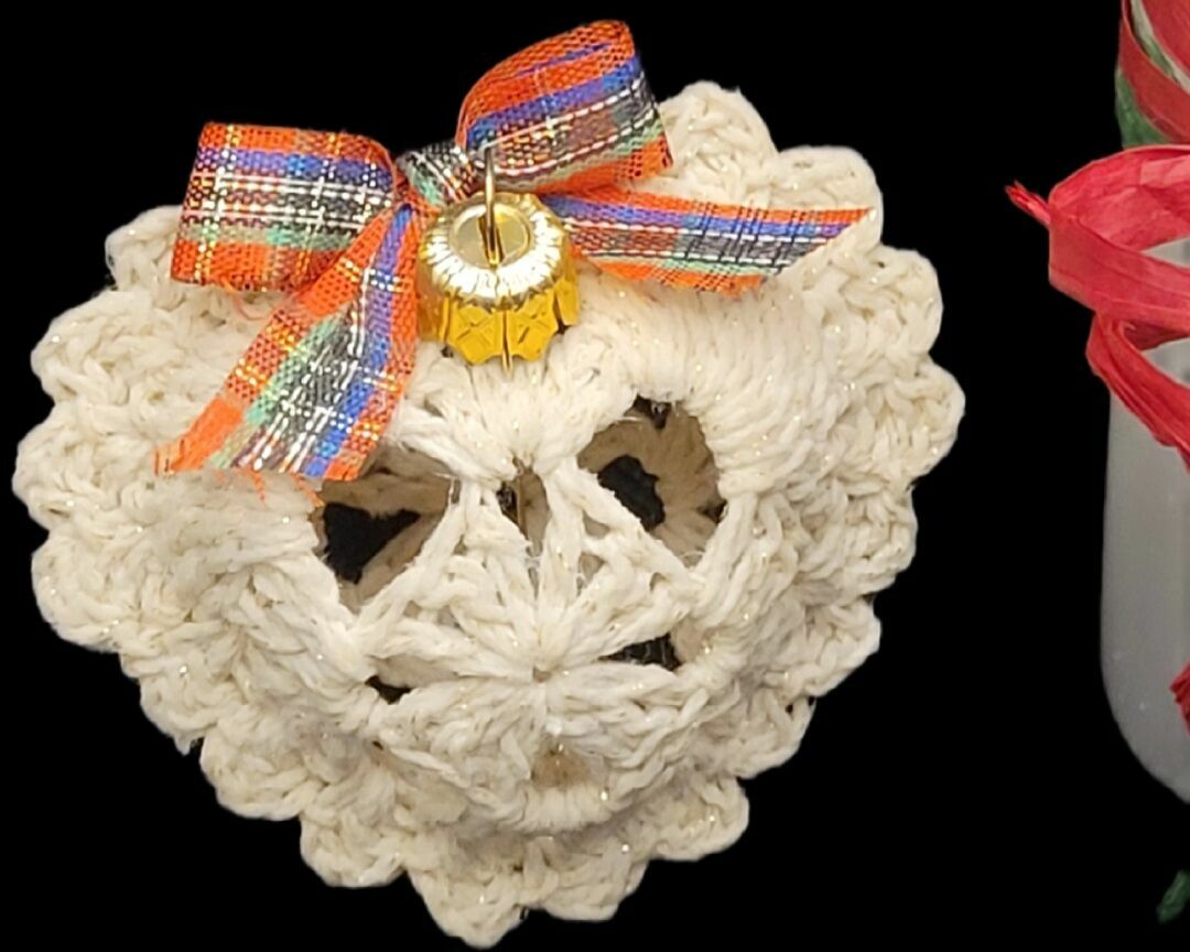Ręcznie robiona bombka szydełkowa – wyjątkowa ozdoba świąteczna!Elegancka, szydełkowa,bombka wykonana z kordonka. Ozdobiona kolorową wstążką, idealnie sprawdzi się jako mały uroczy upominek na choinkę lub dekoracja świąteczna do domu.