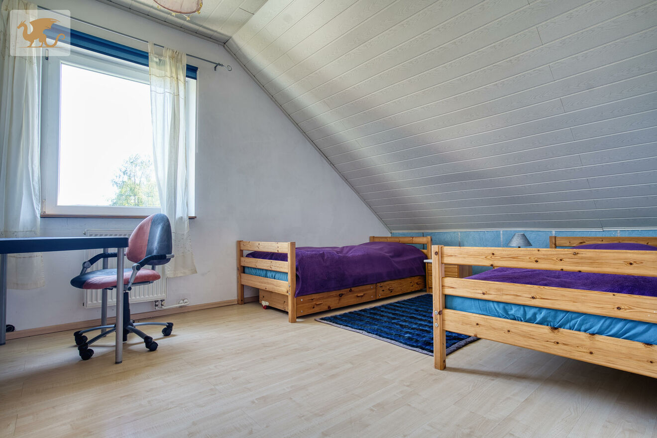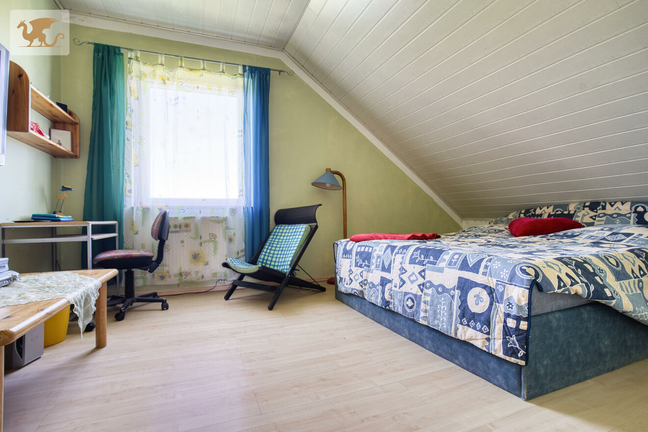 Budynek o powierzchni mieszkalnej 196,7 m został wybudowany w latach 2000 i składa się z dwóch kondygnacji, oferując przemyślany, funkcjonalny układ idealny dla dużej rodziny lub osób szukających przestrzeni także pod działalność usługową. W domu znajduje się łącznie 6 sypialni, 2 łazienki z WC, przestronna kuchnia z jadalnią oraz duży salon z częścią wypoczynkową. Strefa dzienna mieści się na parterze i prowadzi bezpośrednio na ogród to otwarta, komfortowa przestrzeń z dużą ilością okien, co zapewnia znakomite doświetlenie wnętrz i przyjemny kontakt z zielenią. Na poddaszu znajduje się natomiast balkon z widokiem na ogród i otoczenie. Budynek został wzniesiony w technologii murowanej z betonu komórkowego, dach pokryto dachówką ceramiczną, elewację wykończono tynkiem, a na podłogach położono deski. Całość utrzymana jest w dobrym standardzie i wymaga jedynie odświeżenia, co pozwala przyszłym właścicielom na dostosowanie wnętrz do własnych potrzeb. Dodatkową wartość użytkową stanowi pełne podpiwniczenie budynku.
