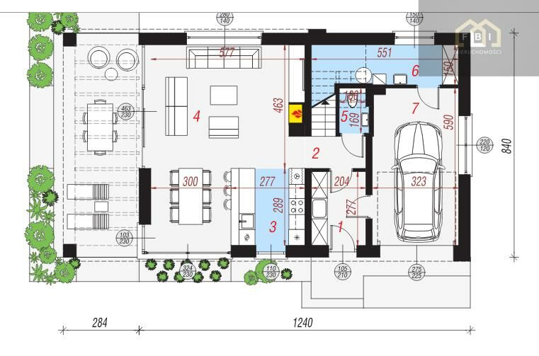 - podjazd, opaska wokół domu i taras utwardzone, obrzeża betonowe.