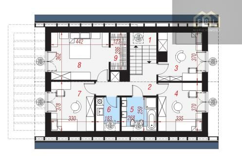 - poddasze wykończone, konstrukcja stalowa oraz rigipsy, docieplenie poddasza 30cm wełną, bez strychu;