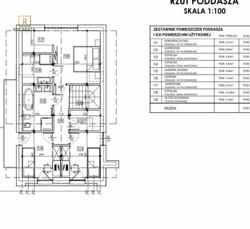 Wysokość pomieszczeń 268 cm (parter) - 272 cm (piętro)