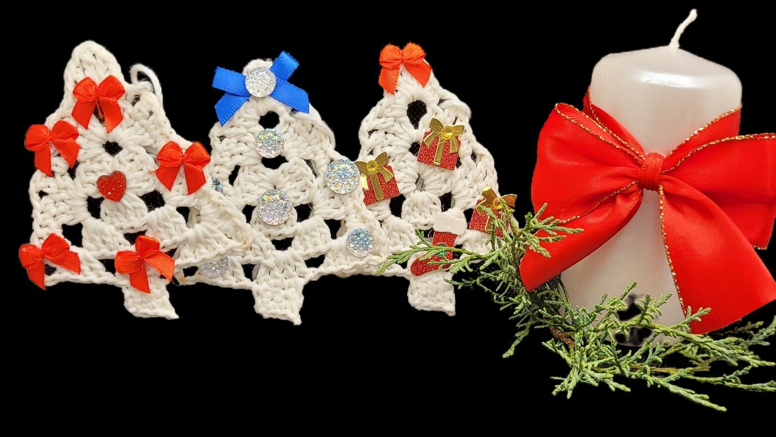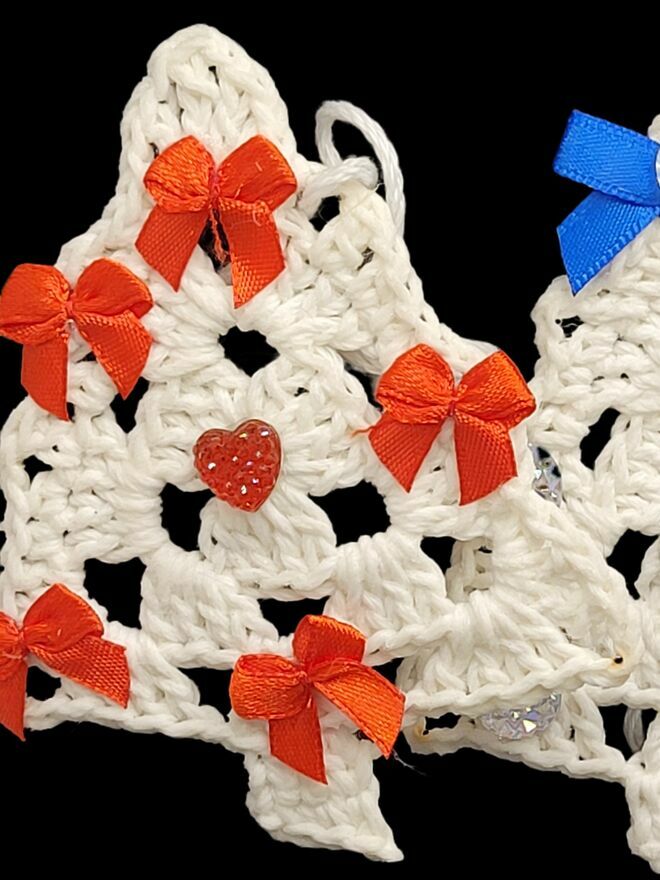 Zawieszki choinkowe ręcznie wykonane na szydełku.Mocno usztywnione.