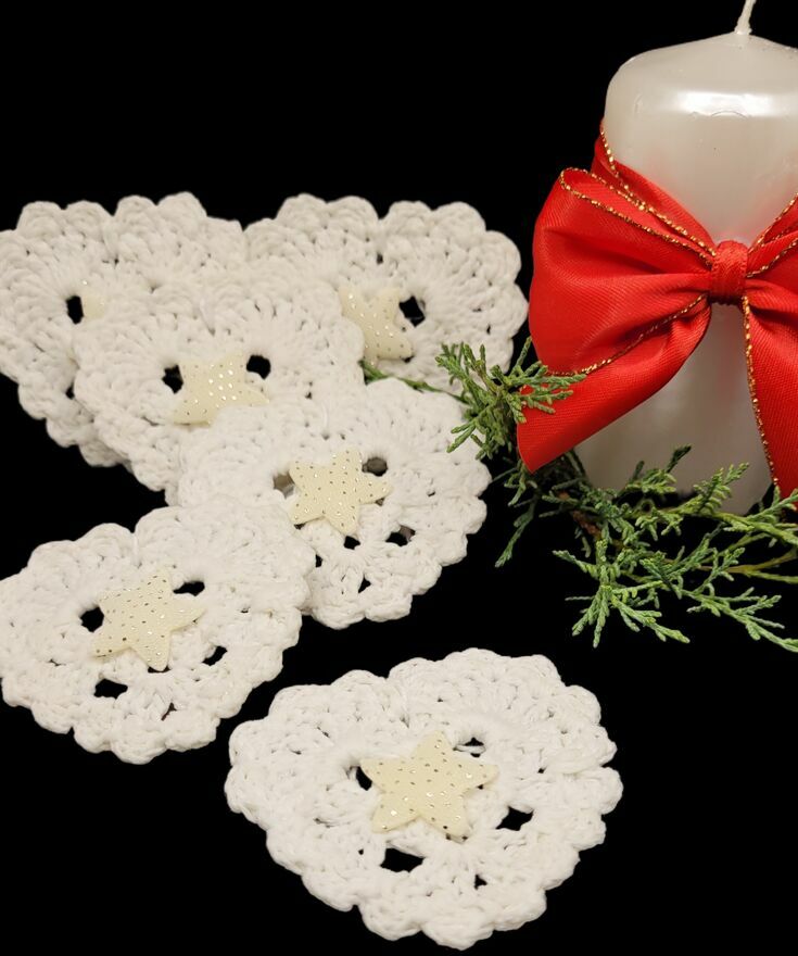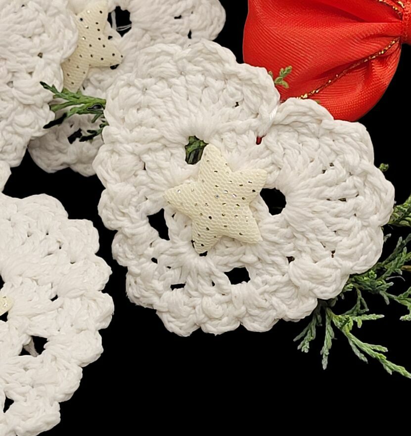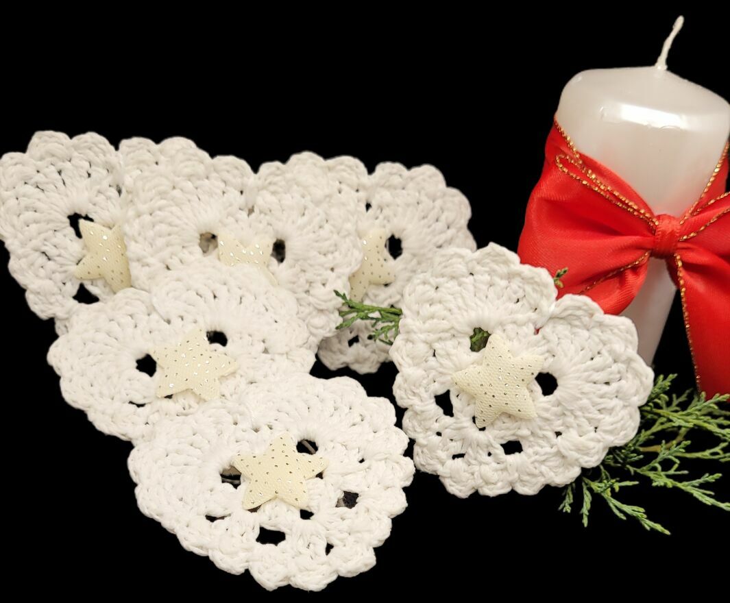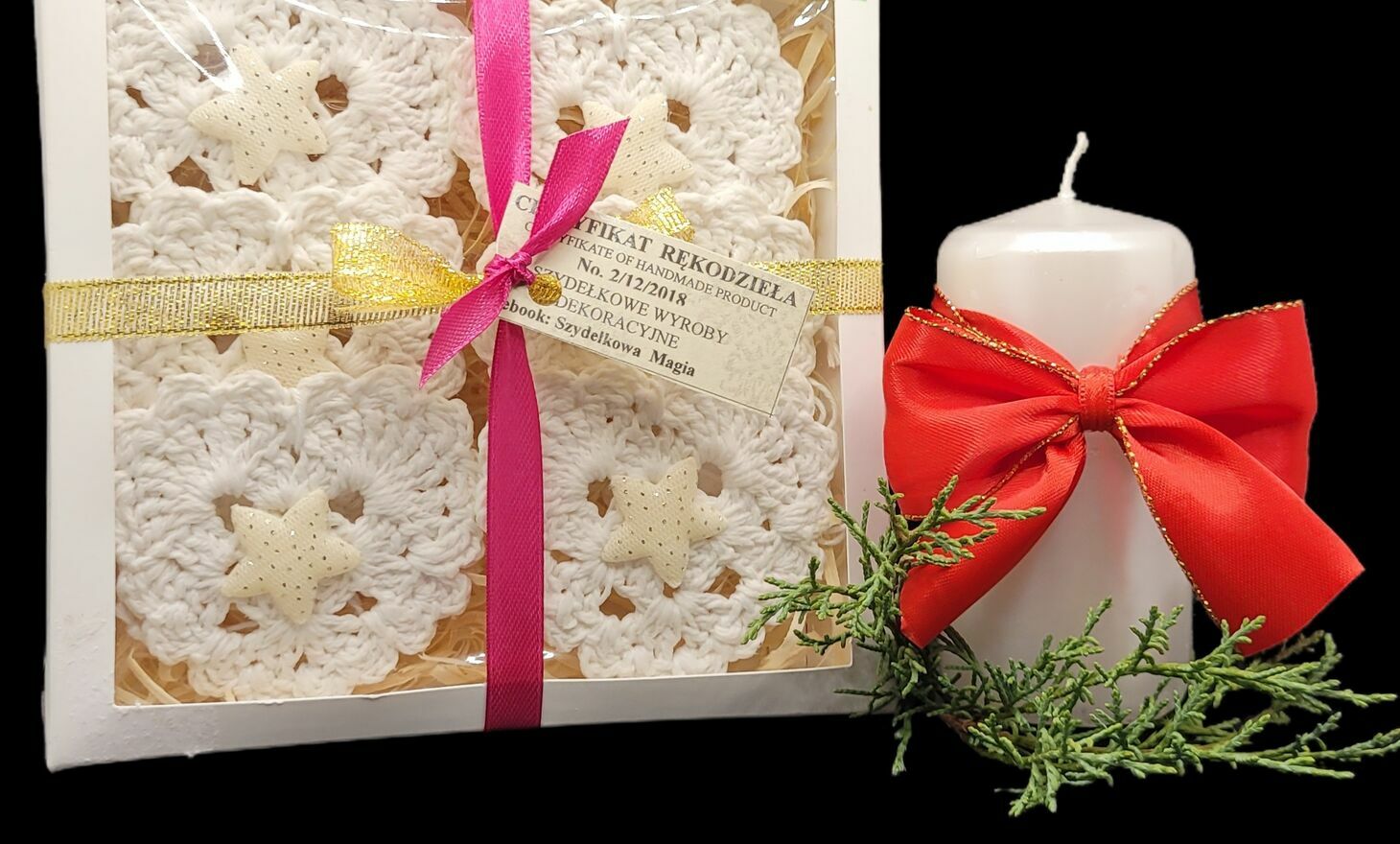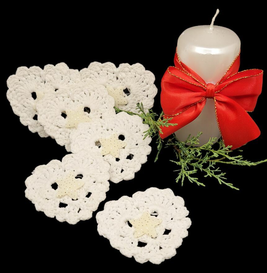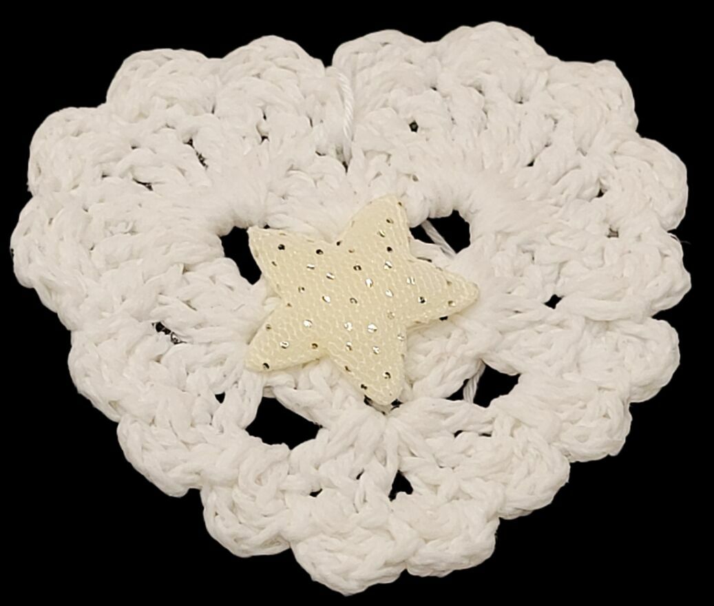Zawieszki choinkowe serduszka ręcznie wykonane na szydełku. Mocno usztywnione. Komplet zawieszek płaskich.Serduszka dł.7cm × 6szt Wyroby posiadają certyfikat rękodzieła polskiego.